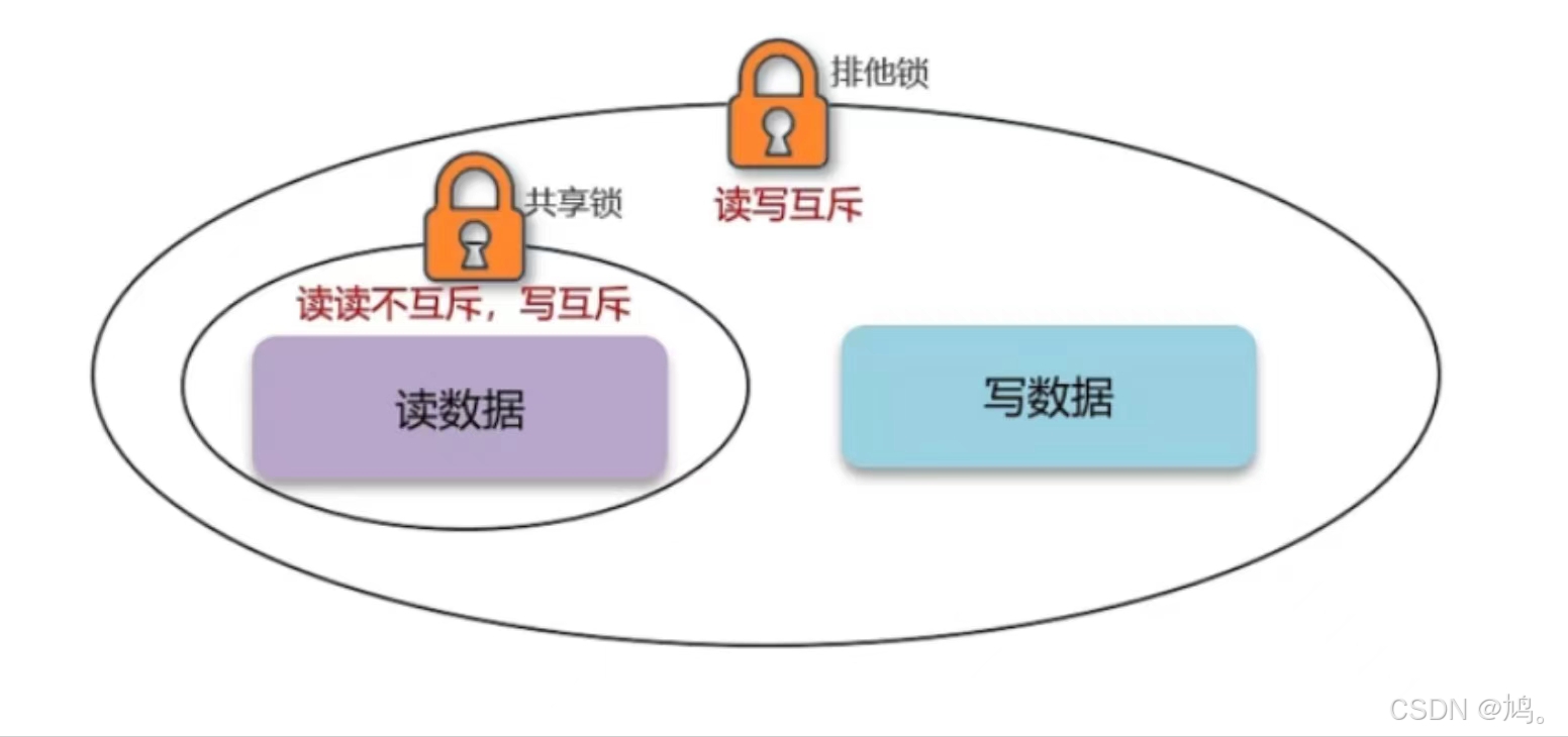 当我们读数据的时候,可以加入共享锁,限制写的功能,当我们写数据的时候,可以加入排他锁,阻止其他线程读写。