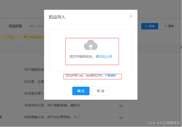 this.upload.title = "药品导入";