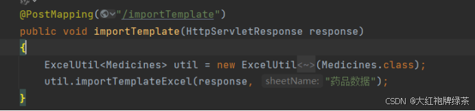 导入操作的后端代码,要实现这一步需要在实体类中在要导入的实体前面加上@Excel标签