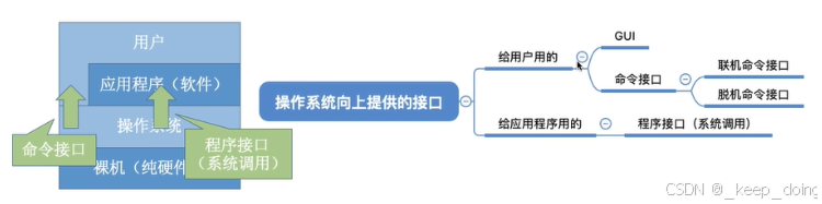 - 用户是通过命令接口或者程序接口向计算机发出请求的(狭义的用户接口不包括图形化用户接口)