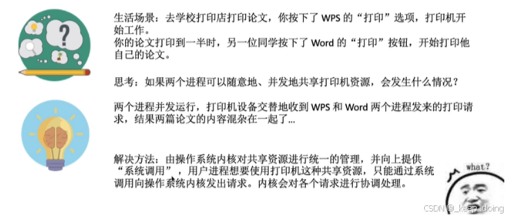 系统调用向操作系统内核发出请求,内核会对各个请求进行协调处理(系统调用通过陷入指令来完成(陷入是一种内中断)-->向内核发出请求,把CPU控制器还给内核)