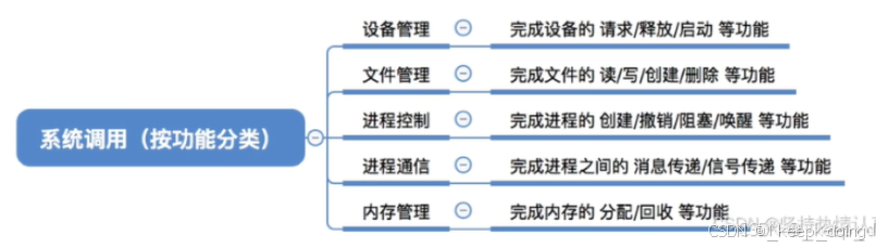⑤ 系统调用要进行“中断处理”比一般函数调用多了一些系统开销。