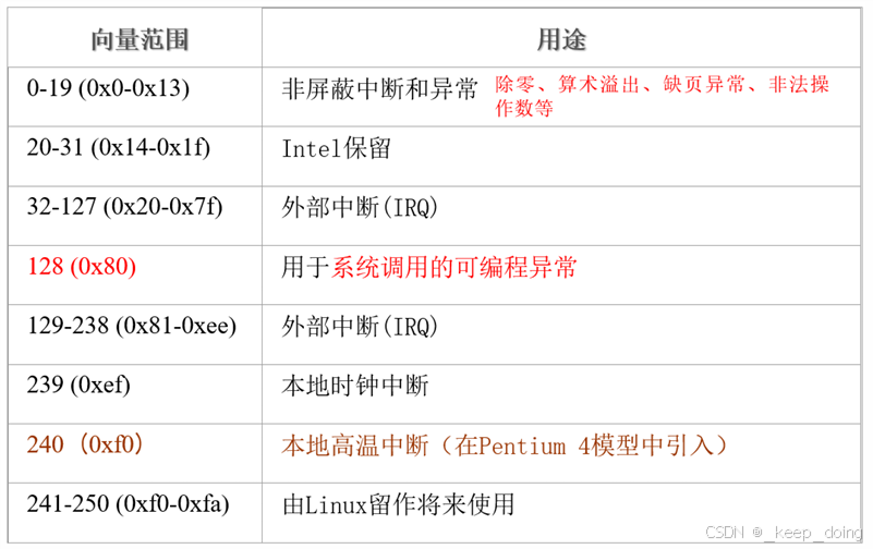 - 陷入指令是在用户态执行的,执行陷入指令之后立即引发一个内中断,从而CPU进入核心态