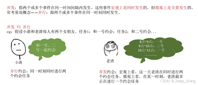 指两个或者多个事件在同一时间间隔发生。这些事件宏观上看是同时发生的,但微观上看是交替发生的。