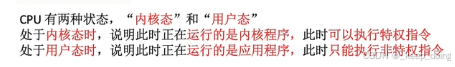 - 用户态执行用户空间是指用户进程所处的地址空间,当CPU执行用户空间的代码时,称该进程在用户态执行,CPU状态(模式)为用户态。