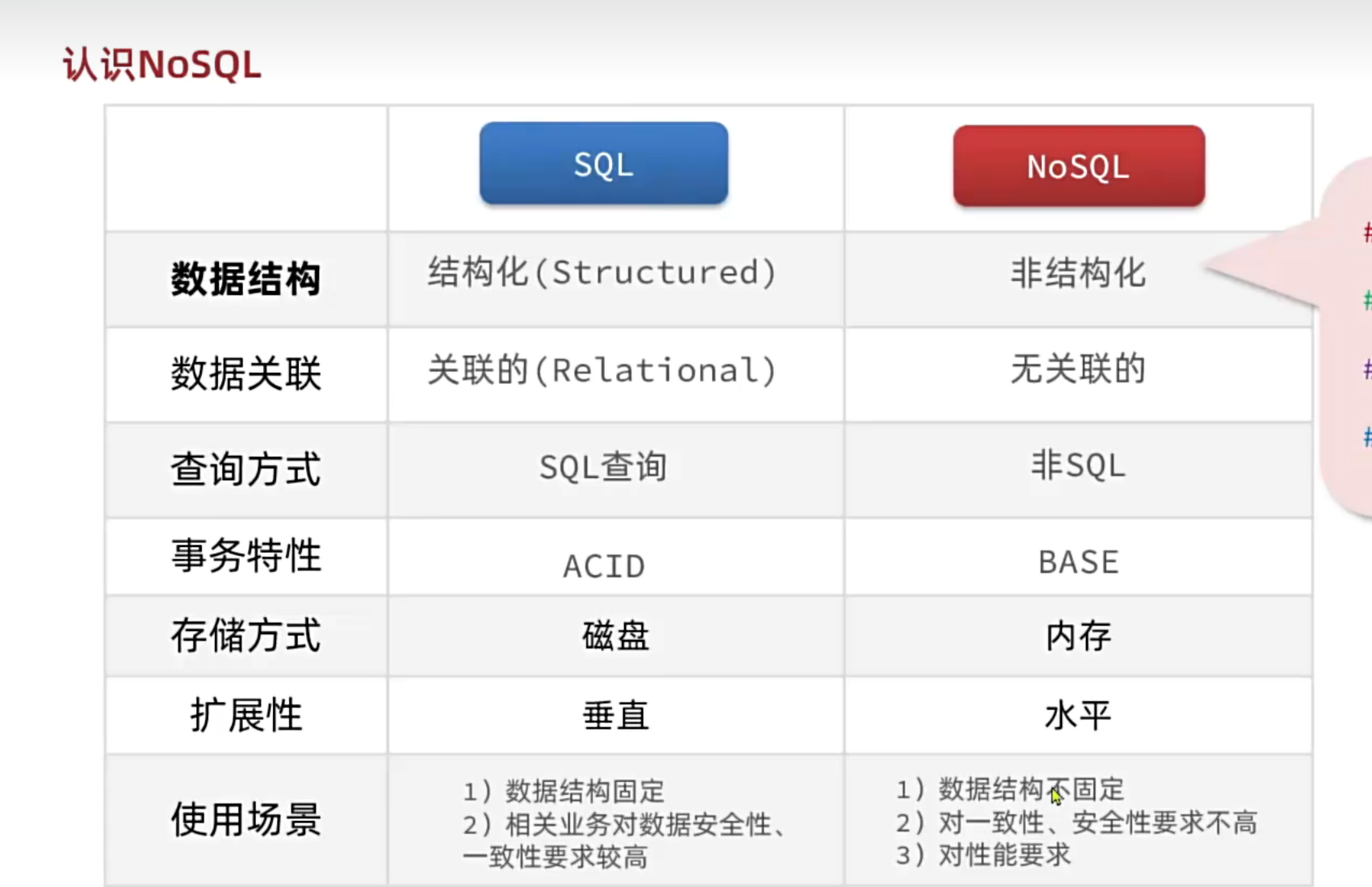 数据结构及关联性:redis中数据是非结构化的,数据是无关联的,mysql则相反