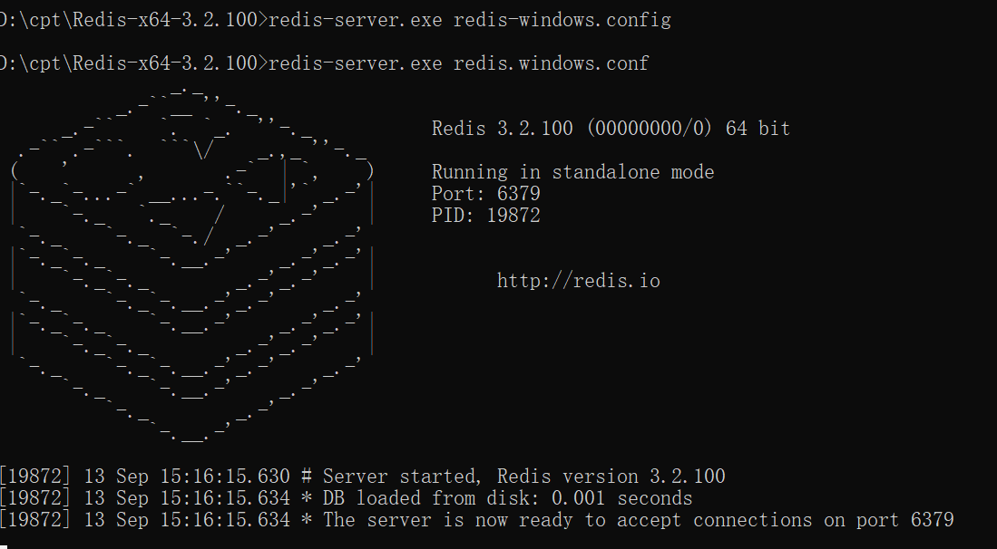 输入reids-server.exe redis.windows.conf,启动完成如下图