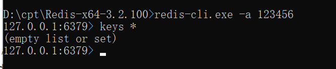 redis启动后,客户端连接,需要再开一个命令行,再redis目录下再输入cmd,重新打开一个命令行,输入redis-cli.exe,输入密码就能成功连接,后面的-a,就是输入密码的指令,可以使用keys *来测试连接有没有成功