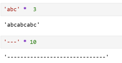 - 字符串 * n ,字符串会重复n次输出,如: