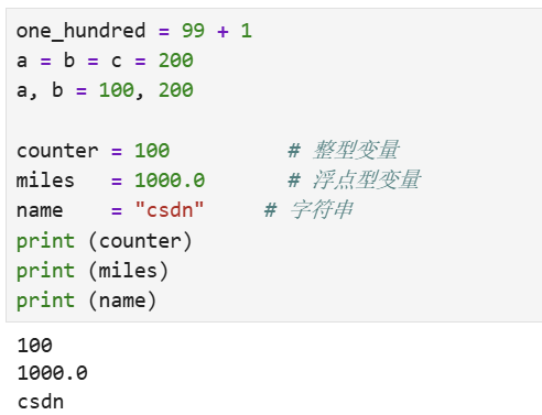 (python的变量使用与C语言的变量使用不一样,在C语言中我们定义一个变量需在变量前规定它的数据类型,如:int、char、long、float等,但在Python中我们不需要这样定义)