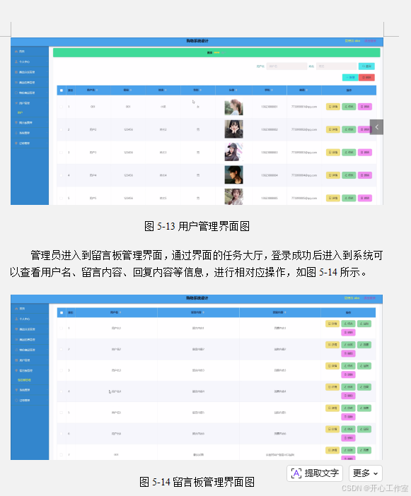 管理员进入到用户管理界面,通过界面的任务大厅,登录成功后进入到系统可以查看用户名、密码、姓名、性别、头像、手机、邮箱等信息,进行相对应操作,如图5-13所示。