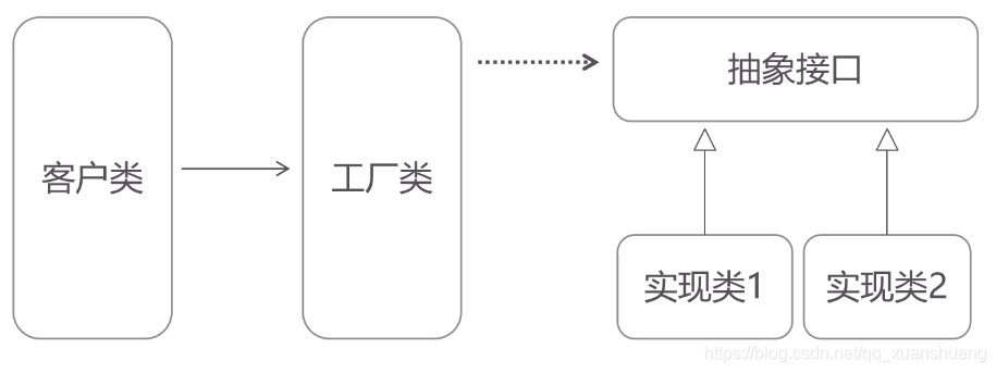 - 在工厂里由工厂决定实现类是哪个,创建实现类的对象
