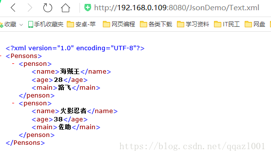 2.访问地址:http://192.168.0.109:8080/JsonDemo/Text.xml