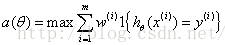 还是以垃圾邮件分类器为例。如果有两个分类器,分类器1(贝叶斯logistic回归,简称BLR)对于垃圾邮件和非垃圾邮件的误差均为2%;分类器2(SVM)对于垃圾邮件的误差为10%,对于非垃圾邮件的误差为0.01%。明显可以看出,我们更倾向于分类器2,因为对有用邮件的高误差是无法忍受的。下面推出加权准确度函数: ,其中有用邮件的权重会比垃圾邮件的权重高,这代表着我们倾向于有用邮件的低误差。显然,