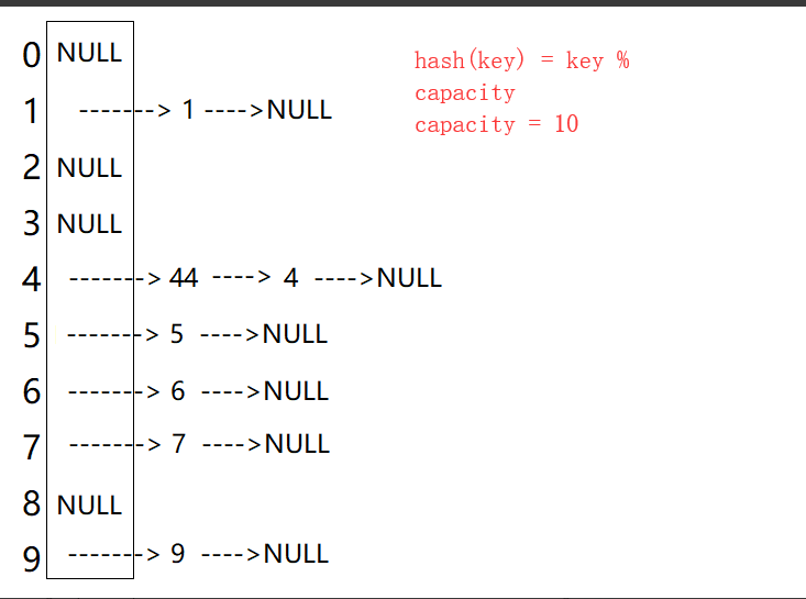 - 首先我们要大概清楚哈希桶(开散列)大概是长什么样的,这个我上一章也讲,不过这里同样贴出!