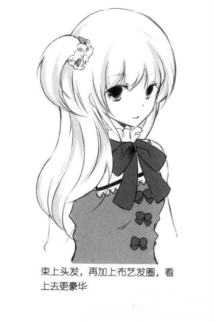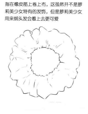 指在橡皮筋上卷上布,这虽然并不是萝莉美少女特有的发饰,但是萝莉美少女用来绑头发会看上去更可爱。