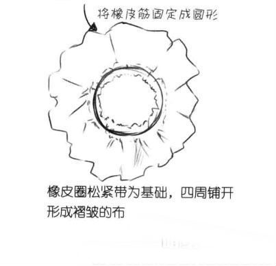 橡皮圈松紧带为基础,四周铺开形成褶皱的布。