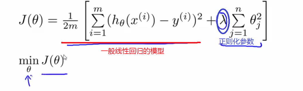 的参数值减小能够使得函数变得简单,但是我们不知道该将哪些特征的参数减小,不知道哪些特征不重要,因此我们采取了下面的方案,即引入变量
