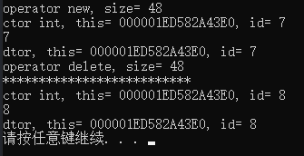 cout << "ctor int, this= " << this << ", id= " << id << endl;