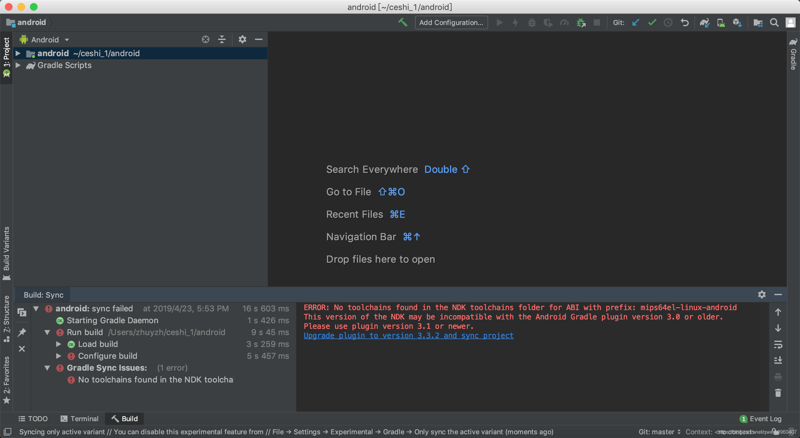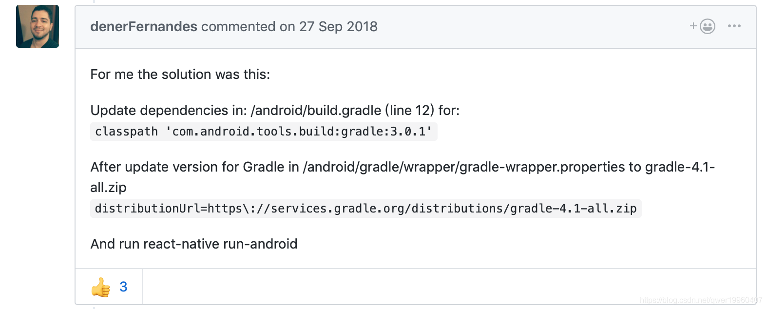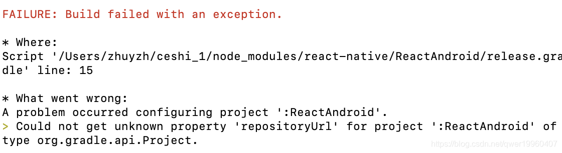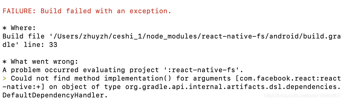 使用的是苹果本,先从git上clone下来项目,然后进入项目所在文件夹使用yarn install命令安装package.json里所有包,安装成功之后使用react-native run-android运行android项目,报