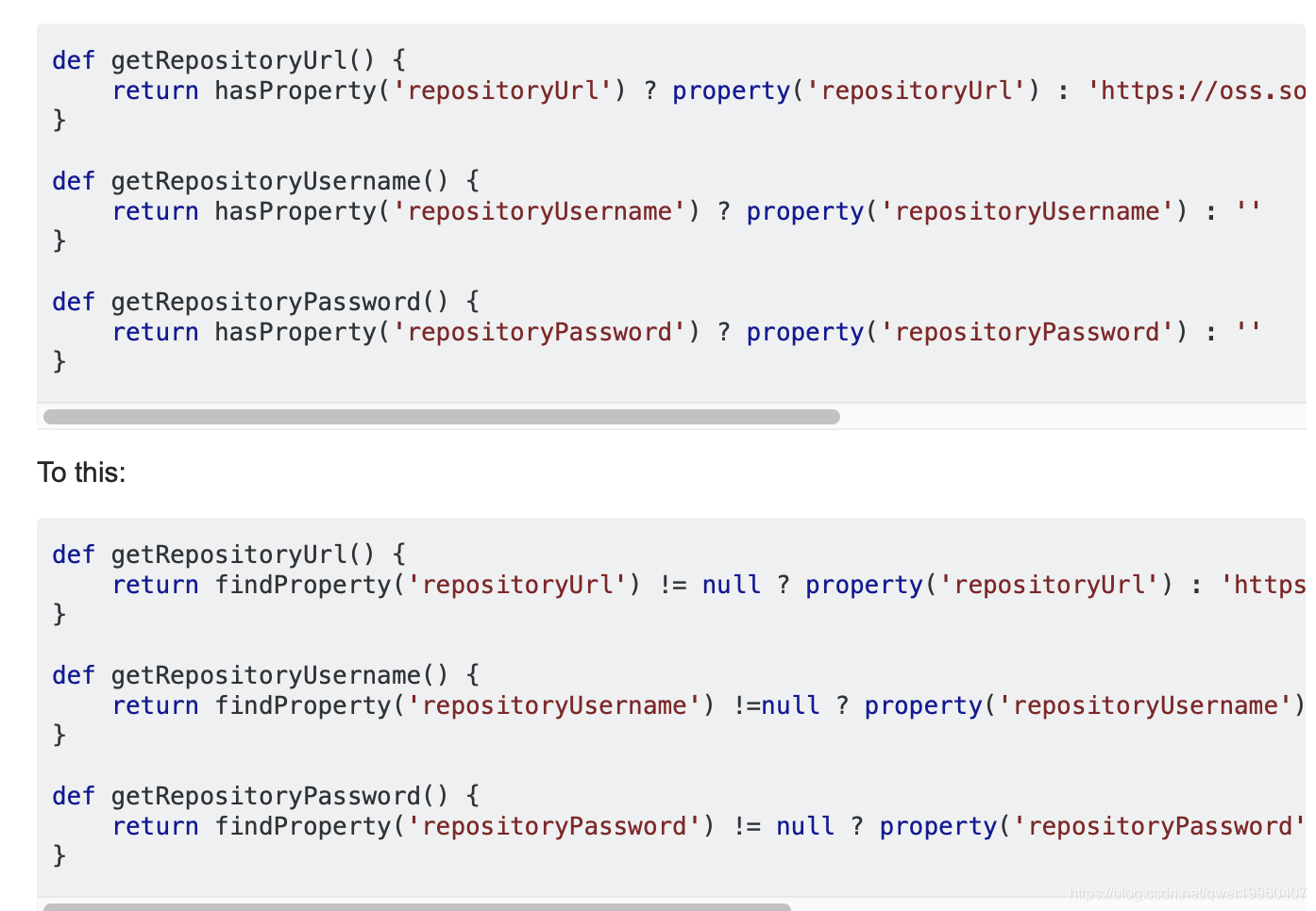 return findProperty('repositoryUrl') != null ? property('repositoryUrl') : 'https://oss.sonatype.org/service/local/staging/deploy/maven2/'