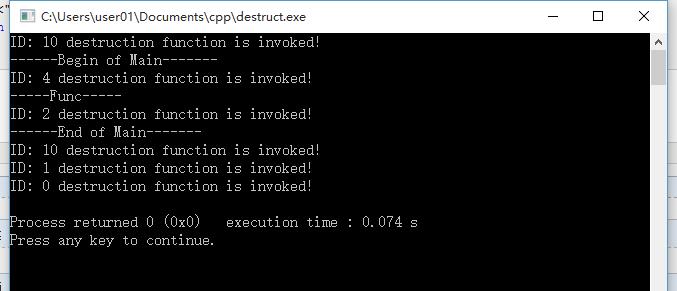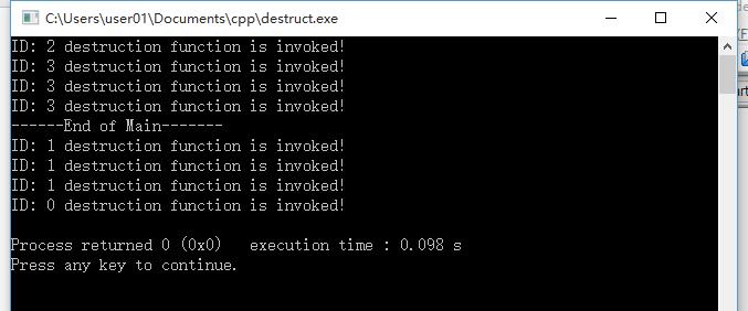 cout<<"ID: "<<id<<" destruction function is invoked!"<<endl;