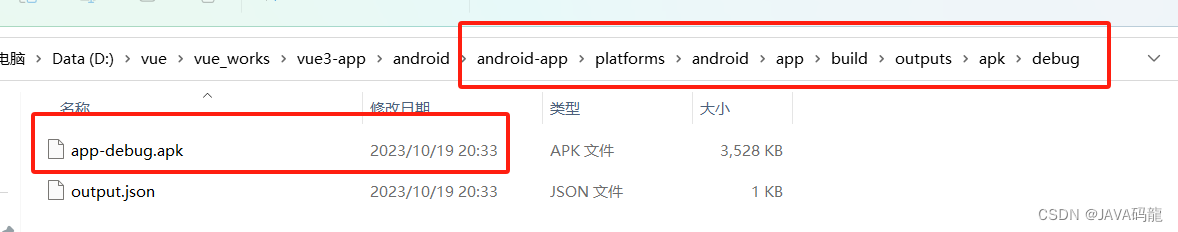 命令执行完后,如果成功,在android-app\platforms\android\app\build\outputs\apk\debug目录下会生成app-debug.apk安装文件