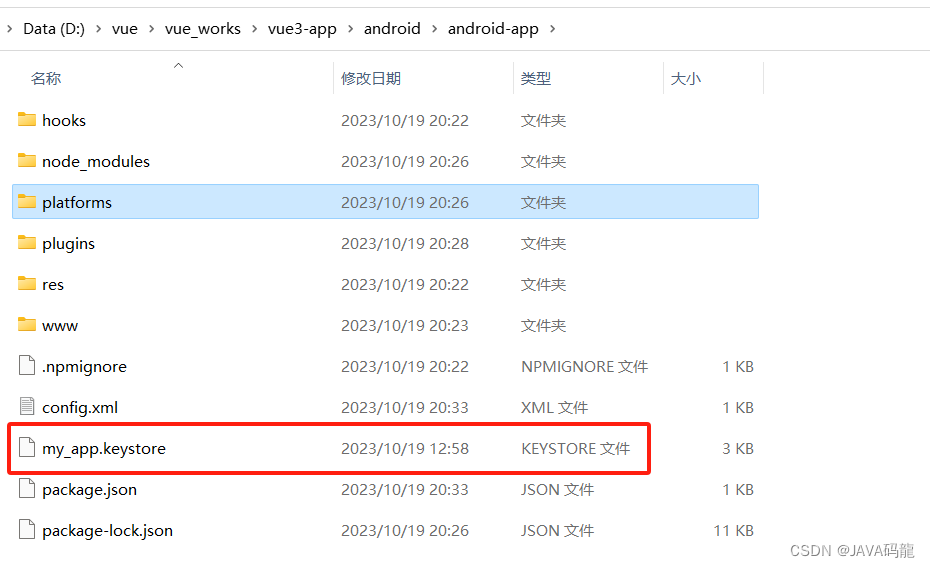 -keystore 就是要生成的keystore的名称 这里是 my_app.keystore