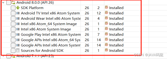 Android版本的安装,我这里选择8.0,因为我接下来安装的cordova也是8.0,笔者在安装其他版本踩过大坑,我建议刚学习的伙伴尽量按照我的方式走,可以避坑。