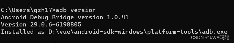 检验Android SDK是否安装成功:在命令行窗口中输入”adb version“: