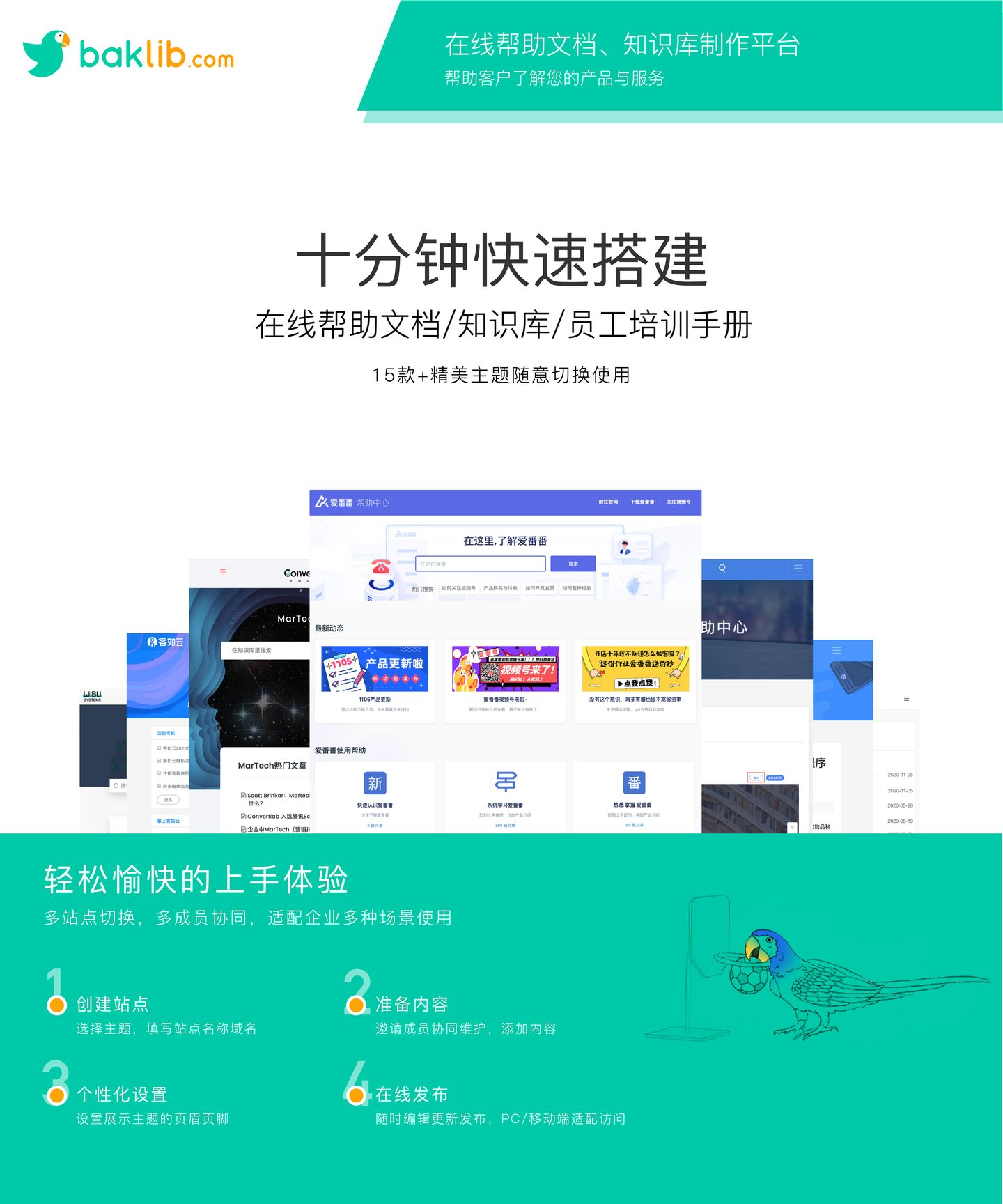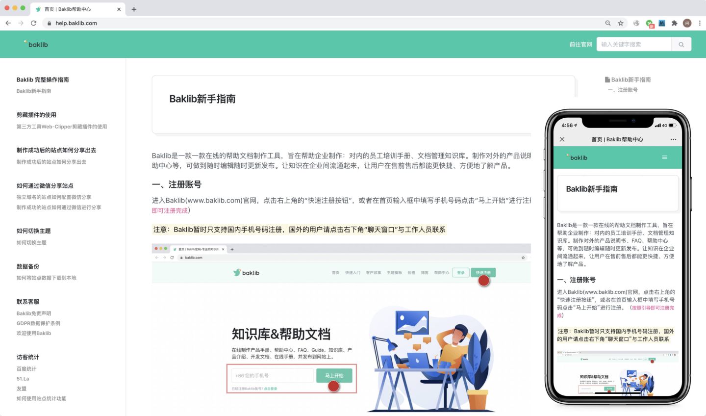 Baklib是一款在线的文档编辑及内容分享工具,不仅为用户提供了好用的知识整理平台,还提供了优质的知识发布平台,通过Baklib制作的文档内容会自动转化成网站,通过设置的url链接就能进行访问,方便客户在线观看,帮助他们对产品的理解,为用户使用提供便利。