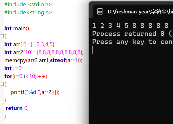 3.与 strcpy 不同,memcpy 会复制完整的 n 个字节,不会因为遇到字符串结束符 '\0' 而停止。