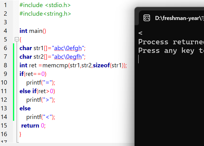 1.如果比较的字节数 n 超过了字符串的实际长度,memcmp 会继续比较 \0 后的内存内容。这可能导致未定义行为,尤其当内存区域未初始化时。