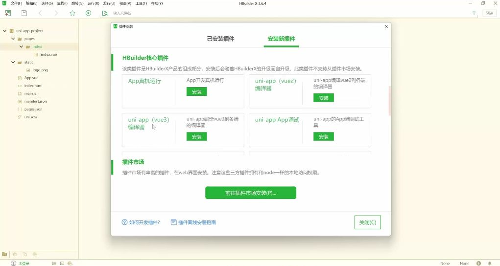 需安装uni-app Vue 3编译器插件 |