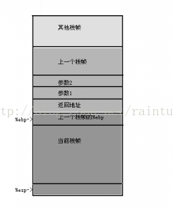 这是32位的栈地址布局。, 32位和64位的区别主要在于寄存器的区别,原来ebp esp 指针寄存器 编程rbp, rsp