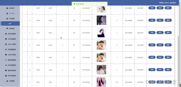 会员用户管理模块:管理员可以对会员用户进行管理,包括查看会员列表、添加会员、编辑会员信息、删除会员等操作。管理员可以通过搜索、排序等功能快速定位到需要操作的会员,并进行相应的管理操作。