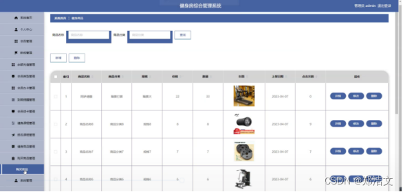健身商品管理模块:管理员可以管理健身房的商品信息,包括添加商品、编辑商品信息、删除商品等操作。管理员可以对商品进行分类、设置库存、定价等,并可以通过搜索、排序等功能快速定位到需要操作的商品。