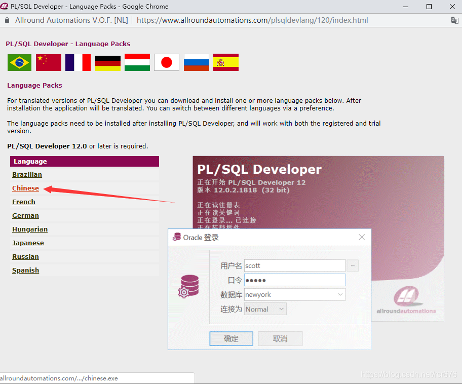 4、下载完成后、双击打开[chinese.exe],安装位置选择自己电脑PL/SQL安装的目录