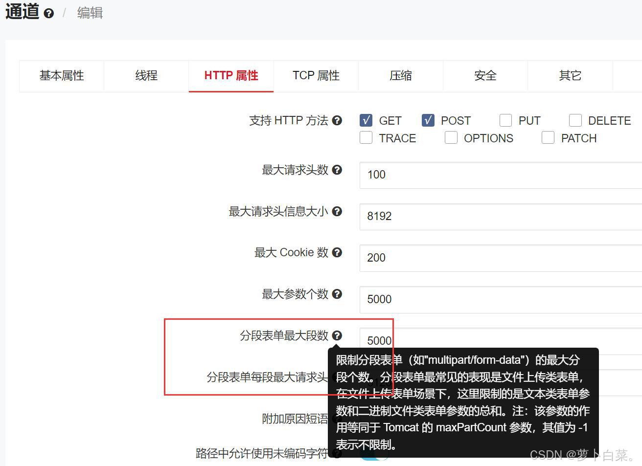 出于安全考虑增加maxPartCount和maxPartHeaderSize参数限制,这两参数的设置依据:
