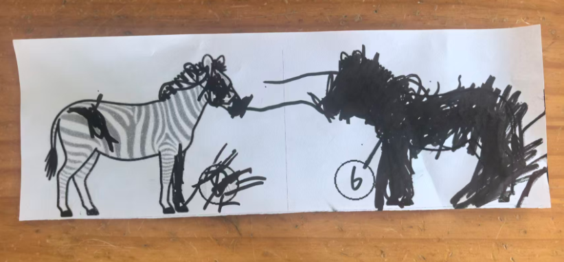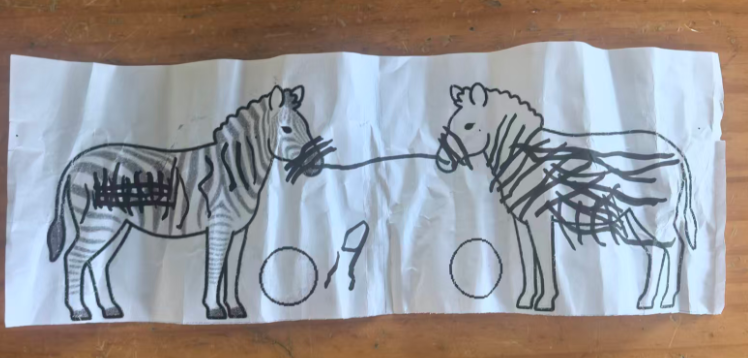之前做了斑点狗,练习画“点”(小面),效果还可以,我想再试试“斑马”:线
