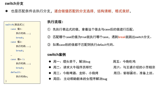 - 表达式类型只能是byte、short、int、char,JDK5开始支持枚举,JDK7开始支持String、不支持double、float、long。