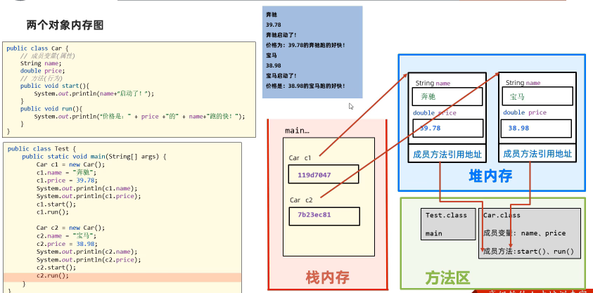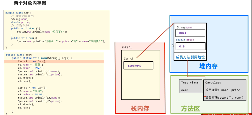 - 成员变量的数据存储在对象中,堆内存里