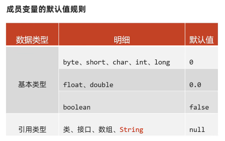 - 成员变量的完整定义格式是:修饰符 数据类型 变量名称 = 初始化值; 一般无需指定初始化值,存在默认值