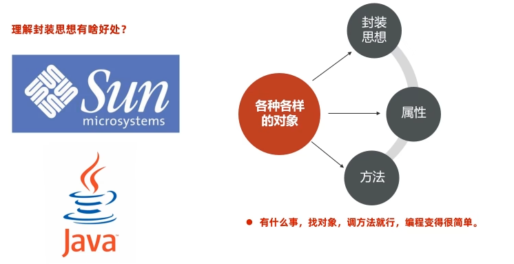 - 封装的原则:对象代表什么,就得封装对应的数据,并提供数据对应的行为