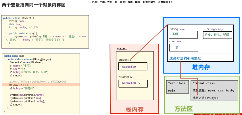2.2 两个变量指向同一个对象内存图