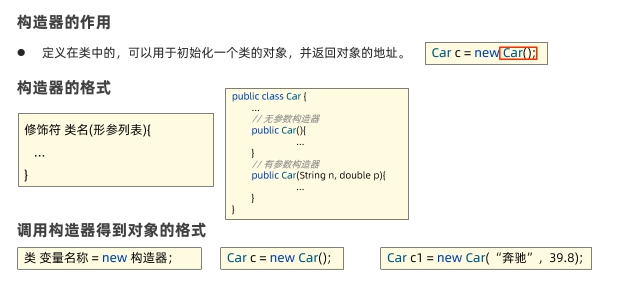 - 有参数构造器:在初始化对象时,同时可以接受参数为对象进行赋值