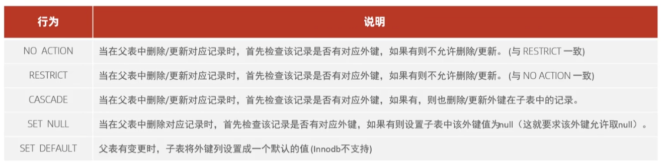 - 外键用来让两张表的数据之间建立连接,从而保证数据的一致性和完整性