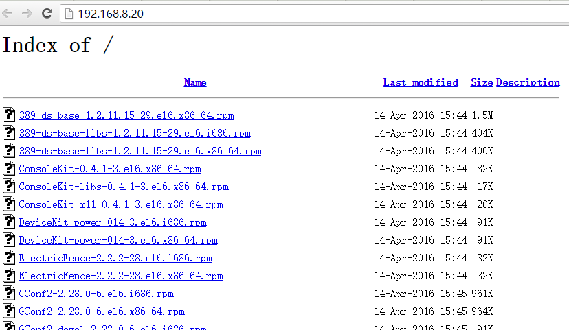 访问:http://192.168.8.20/ 可以看到rpm包列表