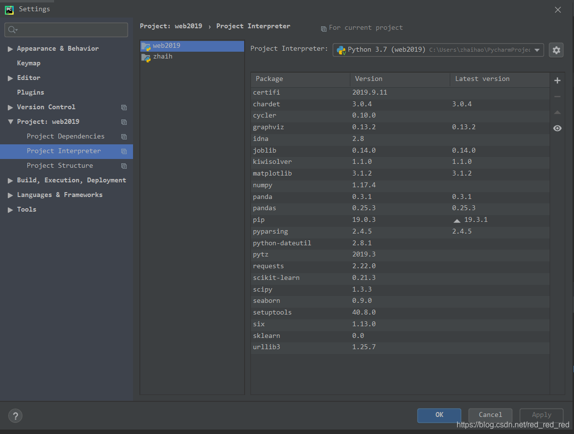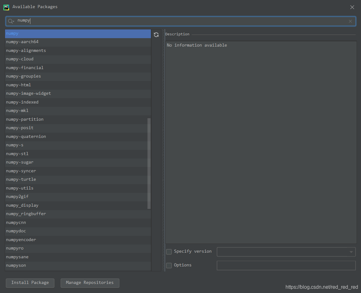 然后点右上角的 “+”号,搜索自己想要导入的库,然后点击 Install Package就可以了