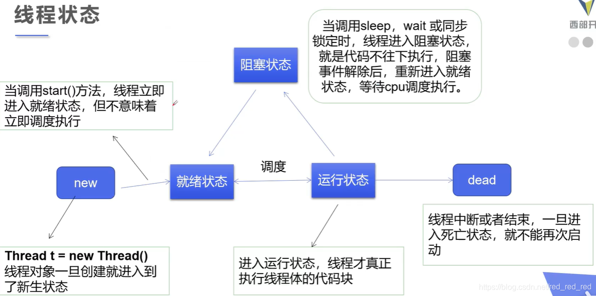 * 注意,线程开启不一定立即执行,由CPU调度执行